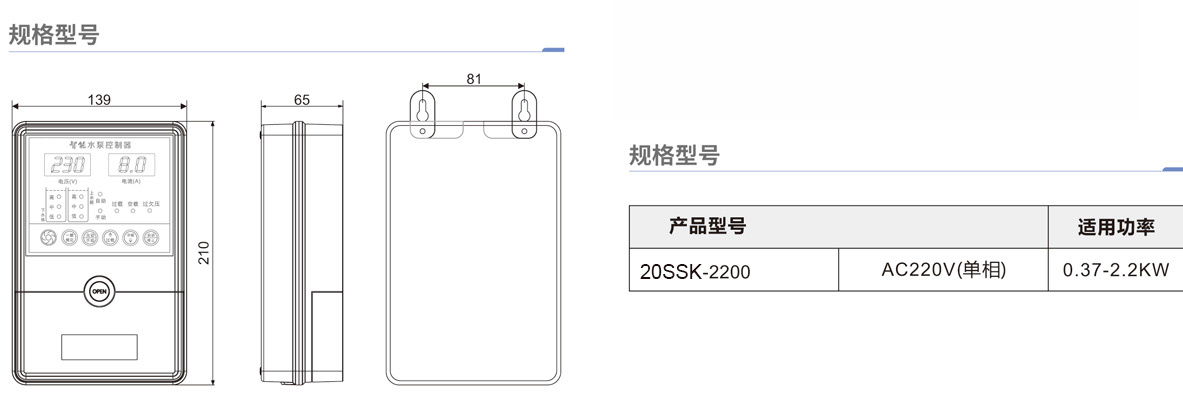 可广泛应用于城市高层建筑的供水和地下室的排水控制;对管道泵、自吸泵、离心泵、潜水泵、多级泵、深井泵都能进行有效控制和保护。