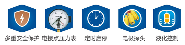 可接4种控制元件:电接点压力表、压力开关、浮球开关、脉冲电极探头。